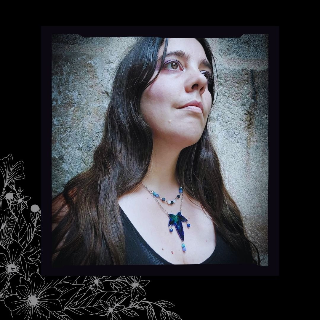 Collier à double rang mélangeant feuille et pierres. Il est doté d'un fermoir mousqueton et d'une chaînette de réglage.