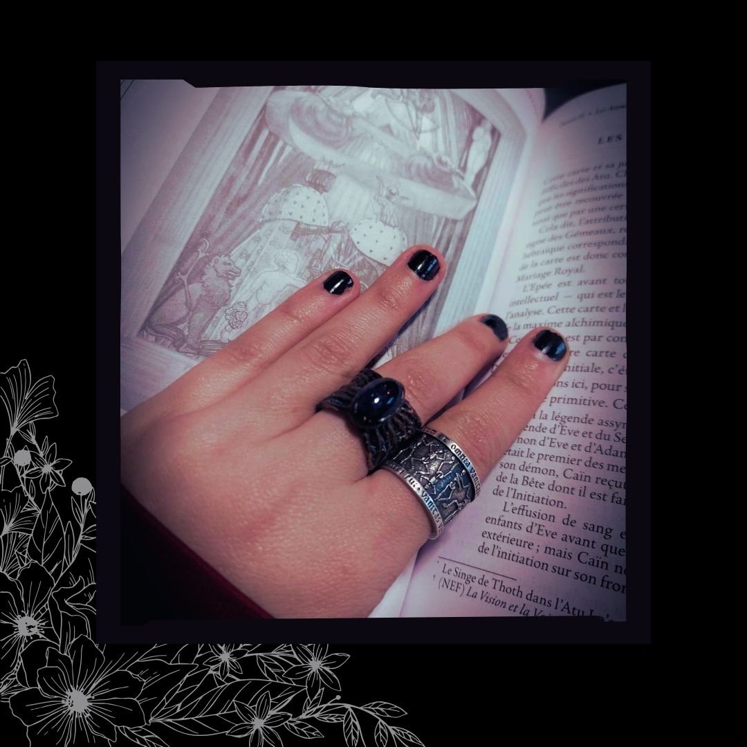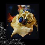 Bague cuivrée d'un seul tenant avec la pierre et texturée de l'intérieur par une mue de serpent.